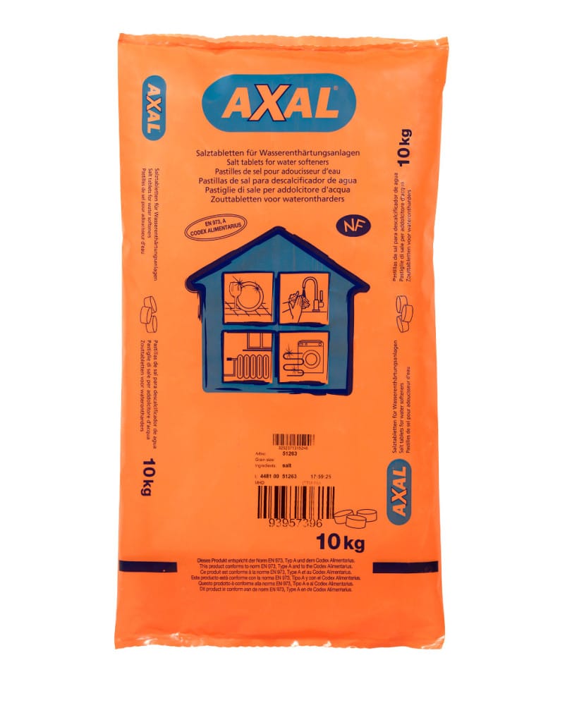 Axal Pro Zouttabletten in handige 15kg zakken. De zakken Axal Pro Wateronthardingszout zijn ideaal voor het bijvullen van waterontharders die